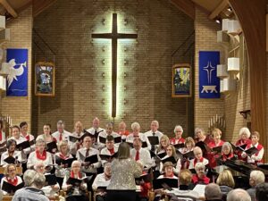 Despite the wintry weather, road conditions and a snow-clogged parking lot, the Forest City Singers present “Christmas Songbook” drew over 60 music-lovers to the concert on Friday, December 6th at 7:00 p.m. After the concert, refreshments were served in the gym where there was a little more elbow room for people to mingle. All considered, it was a successful event with 60% of the tickets being sold at the door. After expenses, it netted just under $1,200.