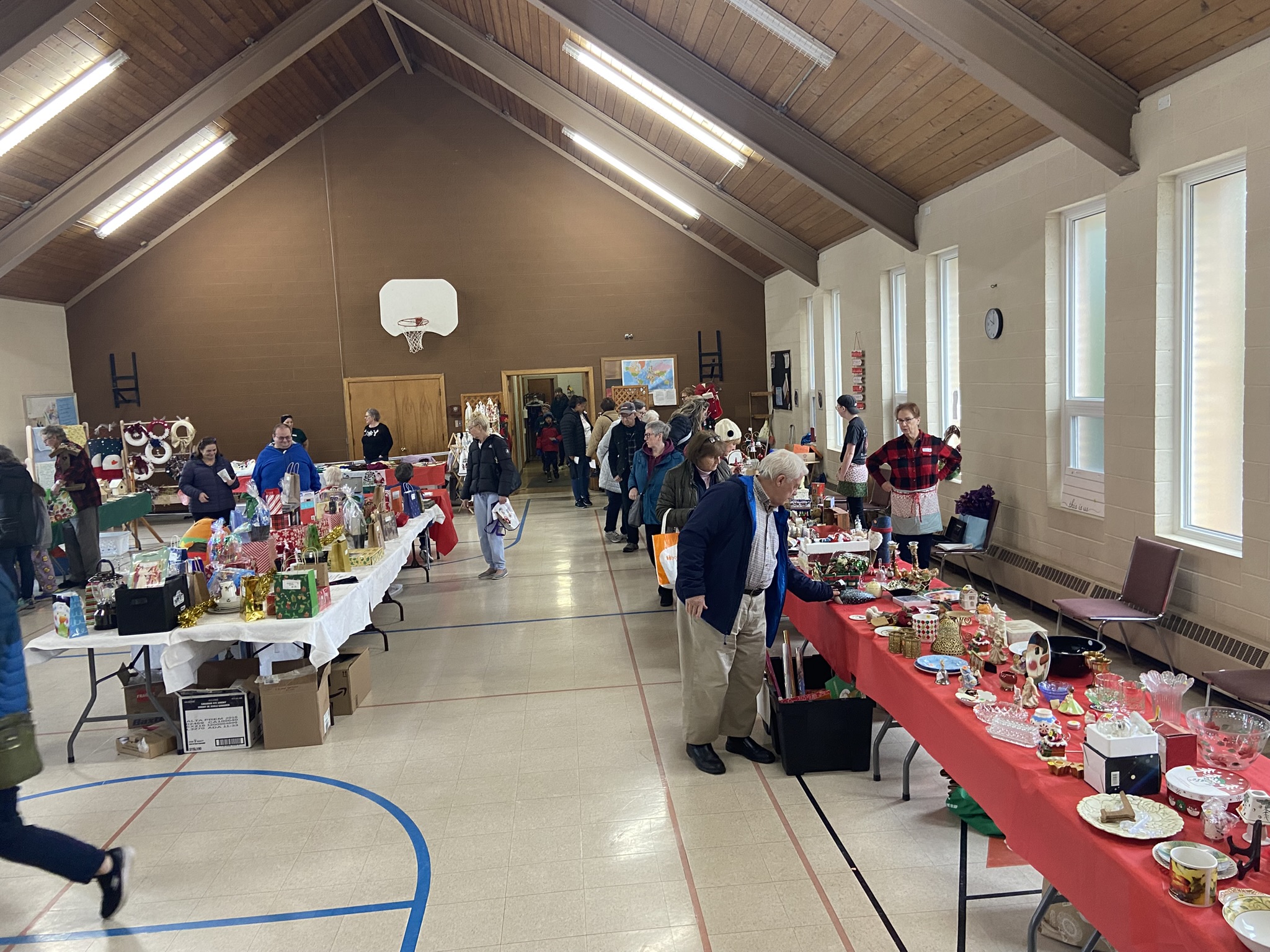 Our Poinsettia Bazaar was held on Saturday, November 30th from 10 a.m. to 1 p.m. The baking and deli table were downstairs in the Friendship Hall with the lunchroom and the books stayed in the kindergarten room. This arrangement was less work for set-up and encouraged movement throughout the building. Crafts, treasures, and the Toonie Table filled the space in the gym. We were happy to welcome the Lindsays back with their craft table this year and we had an additional vendor with Gloria’s jewelry table. Gloria plays pickleball regularly at Rowntree and thus has a connection with the church in that way and generously donated a portion of her sales to the bazaar. Also of note, our jams were a hit again this year with the surprise big seller being our new Merry Christmas Jam.