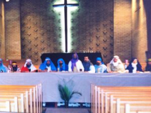 1998 was the 50th anniversary of Rowntree and this was celebrated in different services right through the year. One highlight was a re-enactment of the Last Supper on Maunday Thursday. ‘ Rev Mark’ wrote a song ; ‘My Hands to Yours’ marking the anniversary that was performed many times that year.